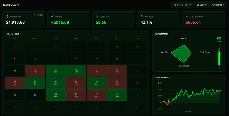 Track your trading performance with comprehensive analytics, P&L tracking, strategy analysis, and trade history.